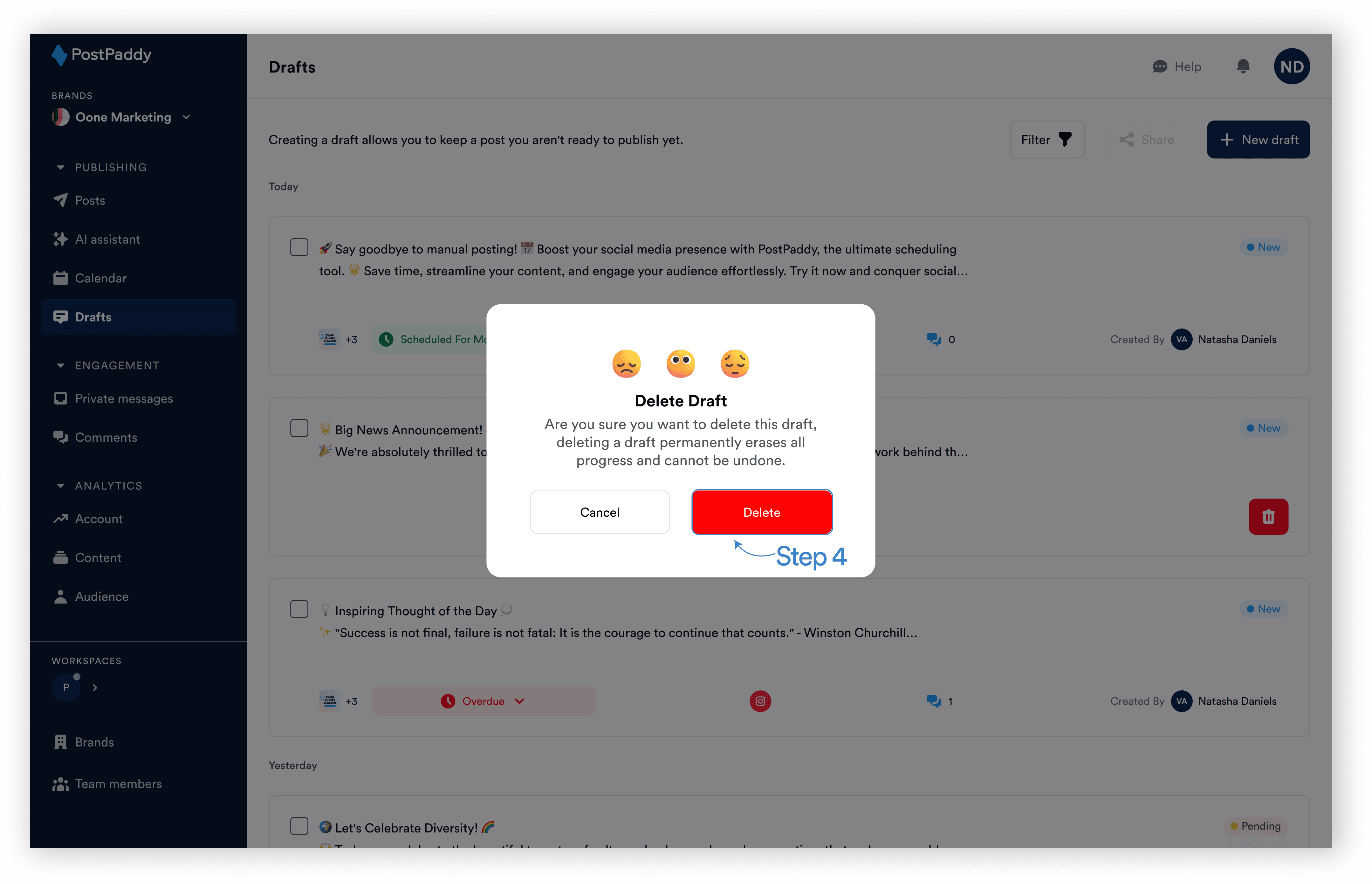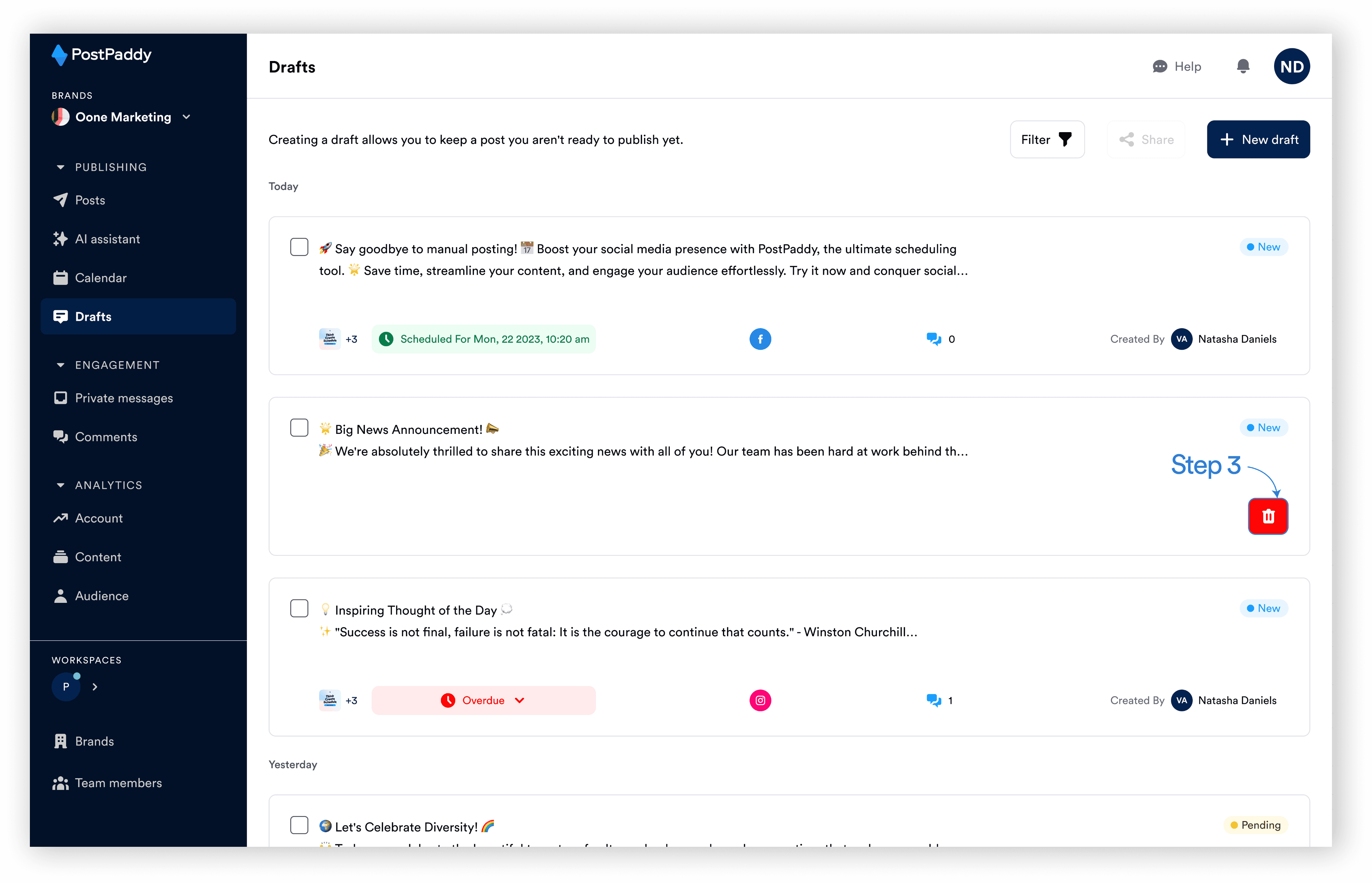 As a draft owner, you have the authority to delete drafts when needed. This guide will show you how to efficiently remove drafts from your PostPaddy dashboard.