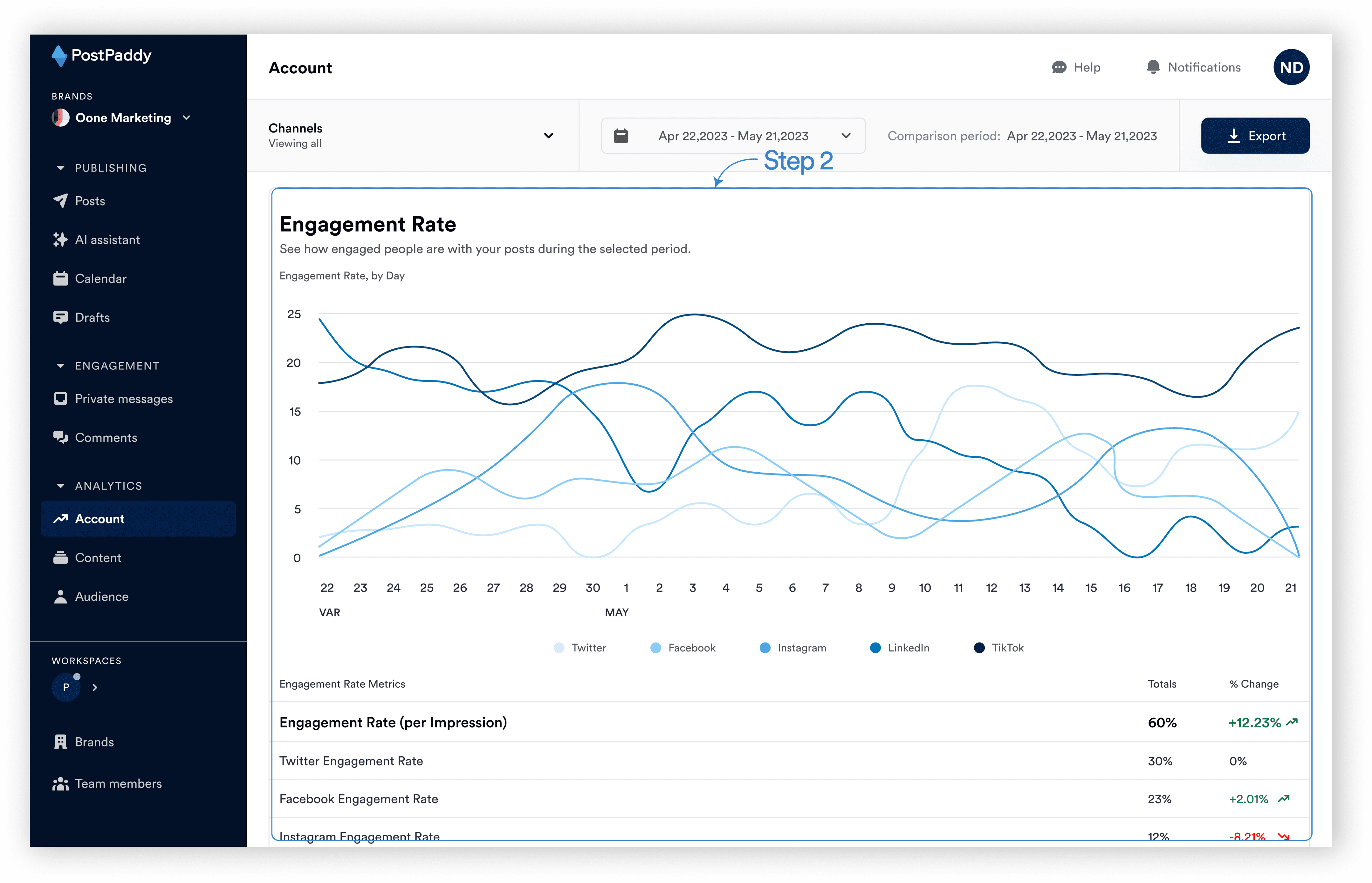 You can see a chart for the account(s) engagement rate.