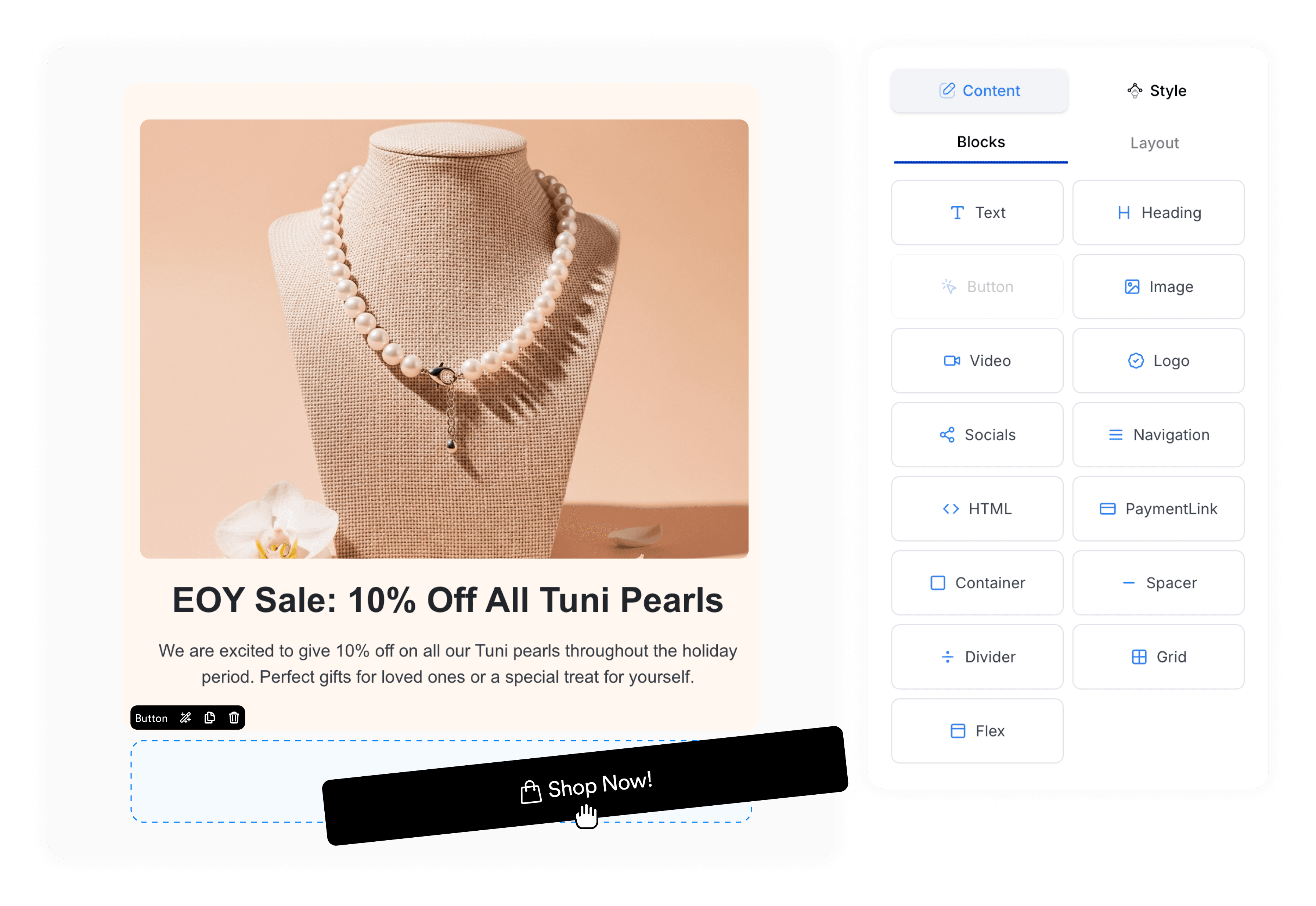 Give us a short brief and our AI builds the copy, subject line, and layout for you. No pro writer or designer needed.