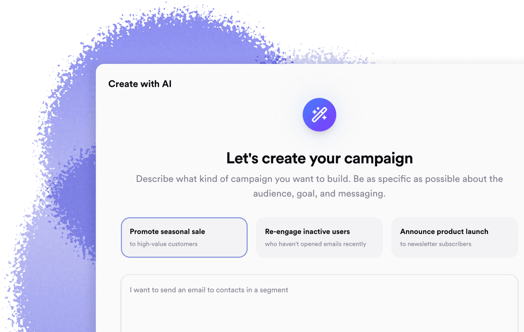 Stop staring at a blank screen. Write and design emails in minutes, build smart automations, and let AI constantly test and improve your results. All in one professional tool.