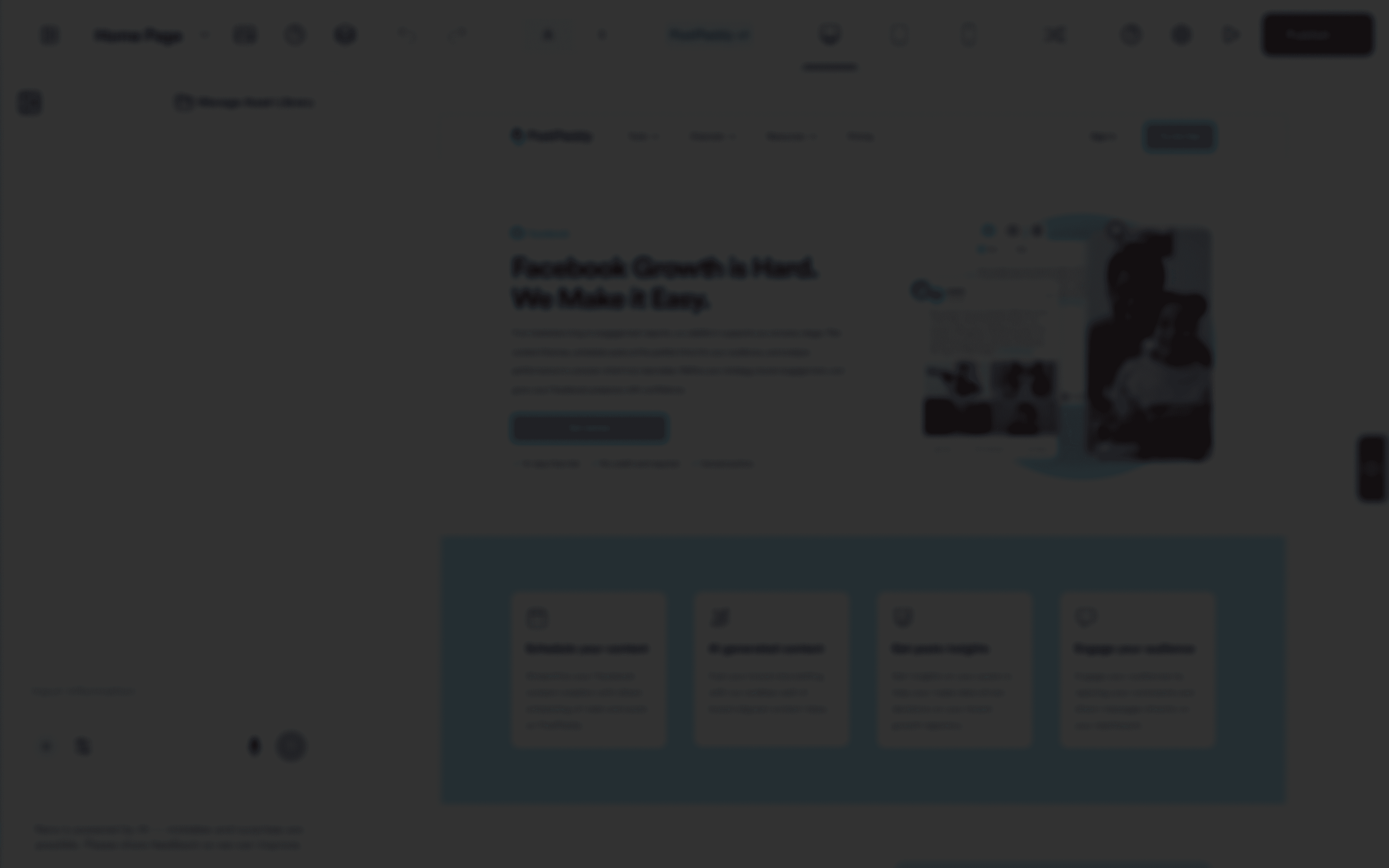You shouldn't need a developer to launch a new offer. Just tell Pages by PostPaddy your goal like "booking calls" and the AI generates the headlines, benefits, and structure using your brand assets. Then make it yours. Use the visual editor to drag in new sections, change the colors to match your brand, or rewrite the text.